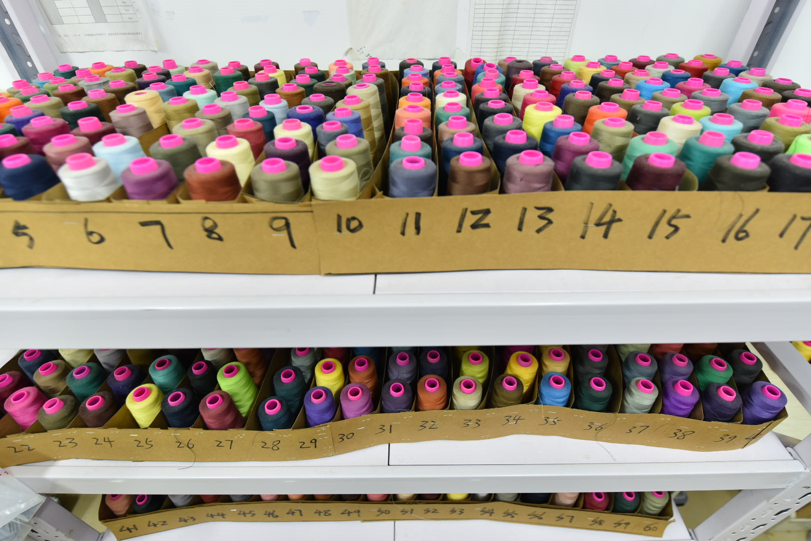 然后是产品开发阶段。在上一环节的设计稿通过后,交到版房,就可以做下一步的胚样打版制作。在这一阶段,设计师会交待衣服领口、袖口、腰围、胸围等的尺寸规格,以及面料的选材等,都要交待清楚。并决定衣服搭配的面料和版单,这些素材配齐之后拿到版房做胚样。