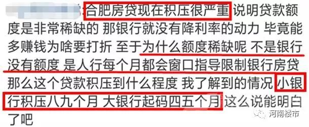 合肥房贷现在积压很严重,不是银行没有额度,而是人行每个月都会窗口指导限制银行房贷。