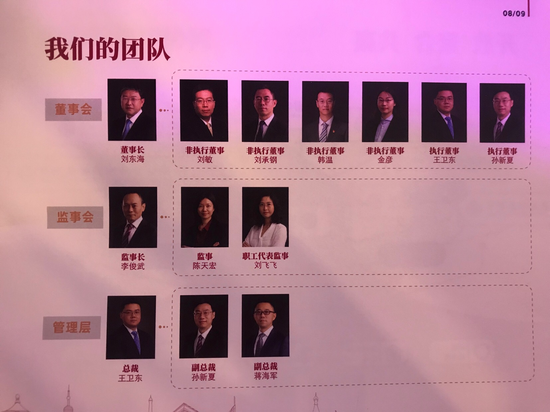 中银理财的董事会成员包括董事长刘东海、非执行董事刘敏、刘承钢、韩温、金彦、王卫东、孙新夏;王卫东任总裁,孙新夏、蒋海军任副总裁,李俊武任监事长。