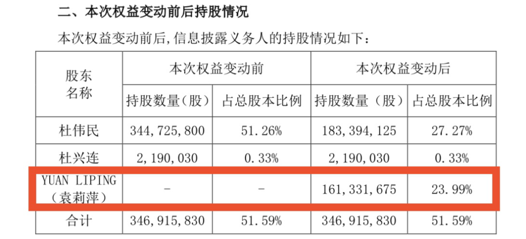 康泰生物此前公告显示,杜伟民1963年出生,今年57岁;袁莉萍于1971年出生,加拿大国籍,今年49岁。两人离婚,杜伟民分割了逾235亿元市值给前妻,创造A股史上“分手费”最高纪录。