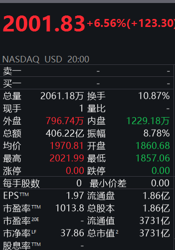 截至美东时间8月20日,特斯拉股价再次大涨,首次突破2000美元,总市值突破3730亿美元,这一数据相当于2个丰田、8个法拉利、23个蔚来。