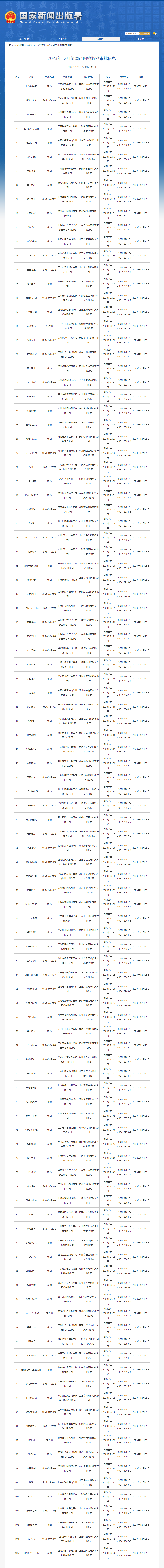 国家新闻出版署发布12月国产网络游戏审批信息 共105款游戏获批