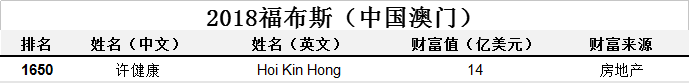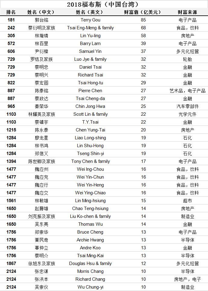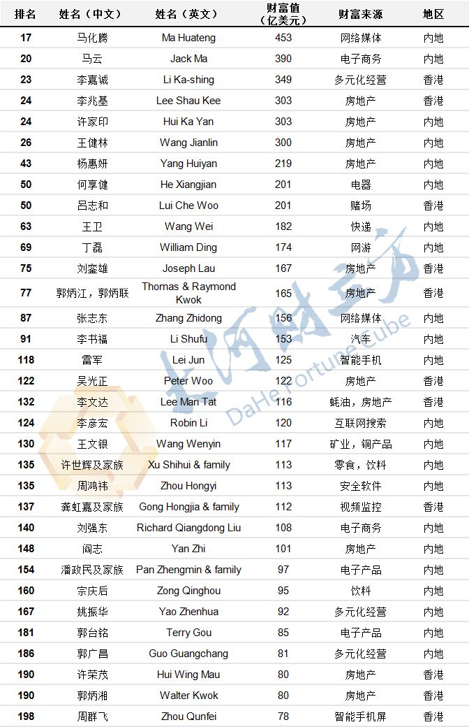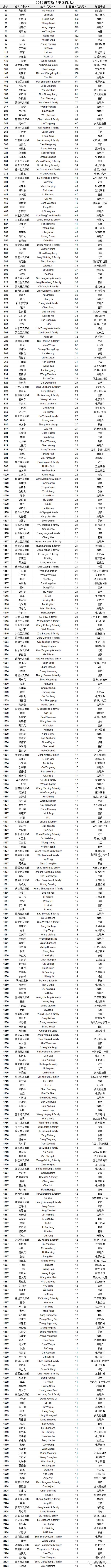 附中国上榜富豪全榜单