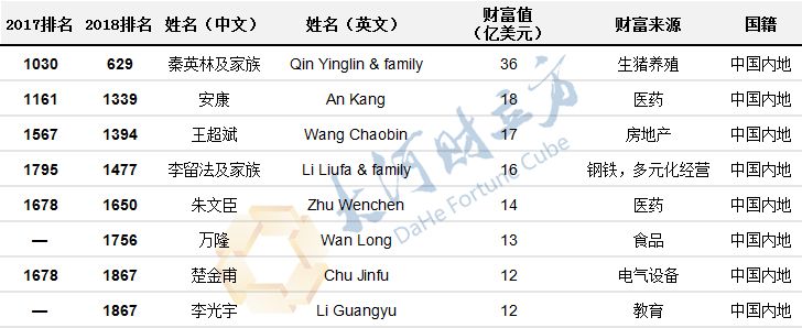 新上榜富豪有259位,多于2017年的195位。共有121人落榜,和2017年的78人相比有所增加。