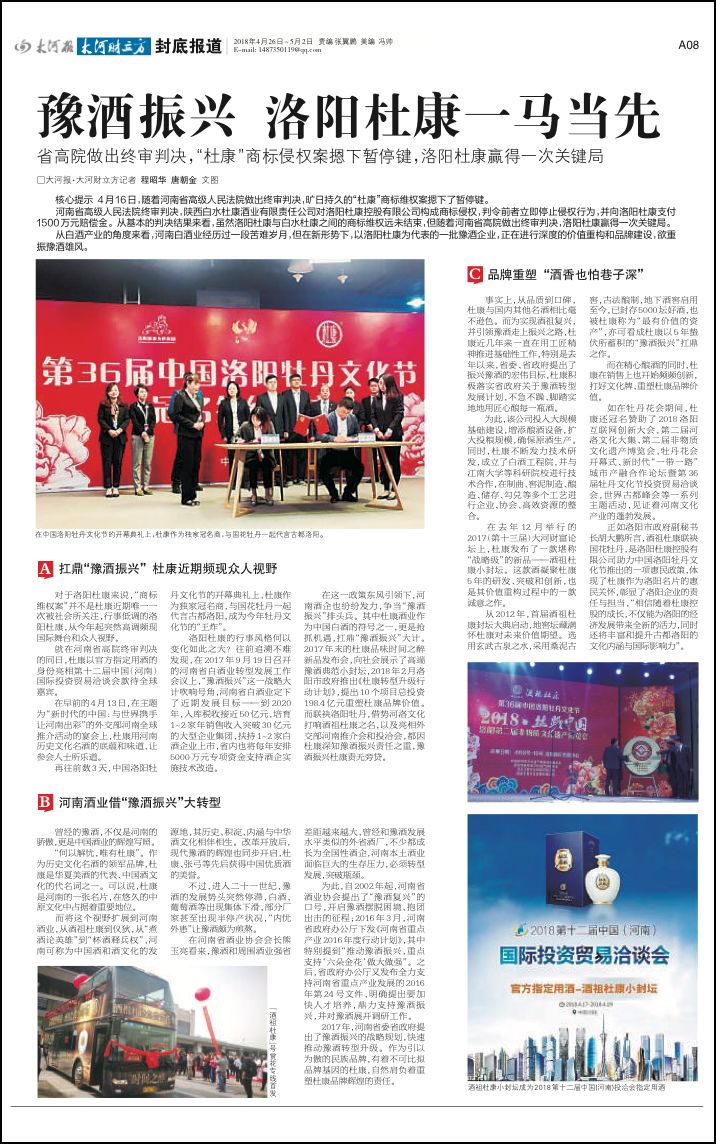 对于洛阳杜康来说,“商标维权案”并不是杜康近期唯一一次被社会所关注,行事低调的洛阳杜康,从今年起突然高调频现国际舞台和众人视野。