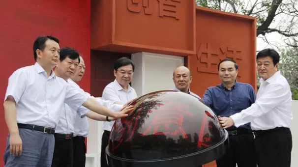 郑州控股公司党委书记、董事长梁嵩巍与各位领导一起按下二砂文化创意园开工按钮