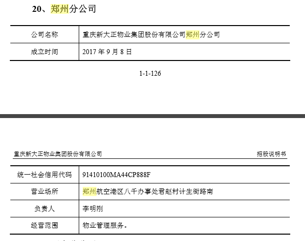 根据其招股说明书显示,重庆新大正物业集团股份有限公司郑州分公司于2017年9月8日成立,公司位于郑州市航空港区,并且在2017年,新大正物业郑州公司承接了郑州园博园的相关物业项目。