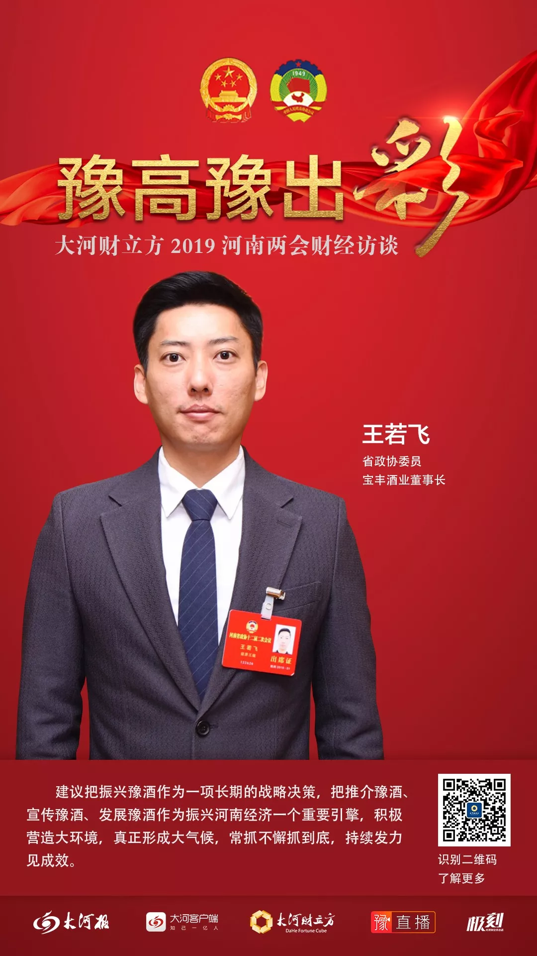今年,王若飞除了关注创二代的话题外,将目光更多聚焦在白酒行业的转型发展与民营经济环境的优化,助推豫酒振兴和河南民营企业高质量发展。