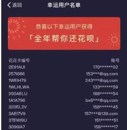 身边还有不少支付宝用户反映,五福奖金池不算啥,于五万分之一的概率里中了一张“花花卡”(花呗是支付宝的一款类似于虚拟“信用卡”的产品)才是锦鲤附体: