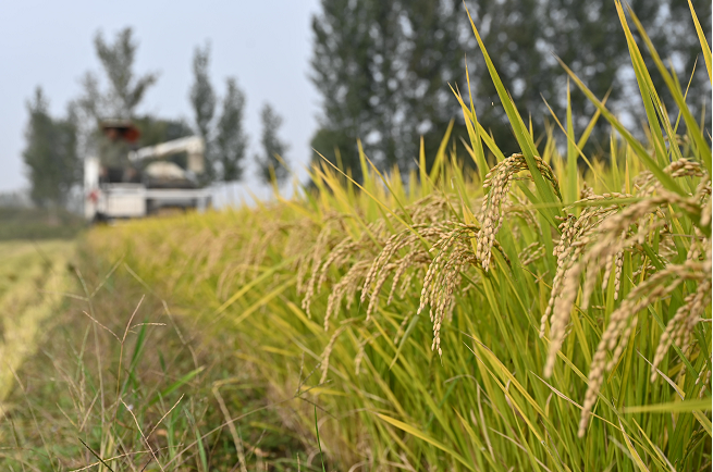 如今的原阳大米产业,基本上形成了插秧与收割的全机械化。记者在现场见到,数十个插秧机一字排开,不少市民在机器前“打卡”拍照。“插秧时节,一台插秧机每天插秧30亩,小型收割机一天也能收割50亩稻谷,这在没有机械化以前是不敢想的。”赵建华说。