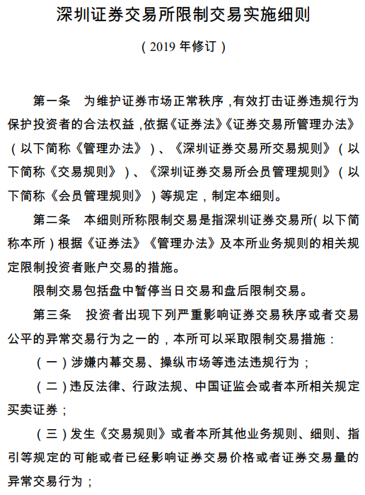 深交所限制交易实施细则公布