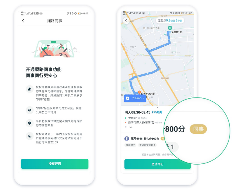 滴滴顺风车开启“顺路同事”