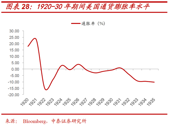 需要指出的是,联储本轮在资产价格高位仍持续宽松的做法,与 1929年大萧条前的宏观环境及做法有一定程度相似性。通胀率始终维持在相对低位,使得联储对债务增加推升的资产价格泡沫带来的风险容忍度增高。