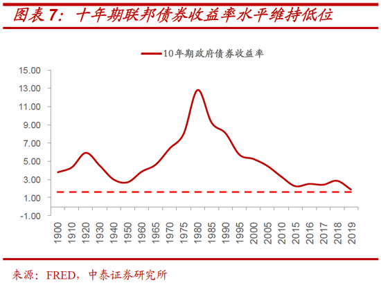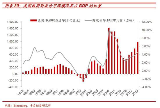 根据2019年年中,美国债务管理办公室对美国年度公共债务发行的最新预测:从2024年基本赤字降为零开始,美国新发行的公共债务所筹的资金就将全部用于支付已有债务产生的净利息 ,其规模介于7000亿到1.2万亿美元或更多。这一脆弱的财政基础,使得美国进一步通过激进财政政策刺激经济的路径并不现实。