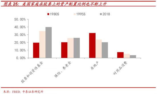 而且,伴随美股“十年牛市”的赚钱效应,美国家庭在股票上的资产配置比例也不断上升,目前已达到40%,这一比例与历史上2002年互联网泡沫时期接近。