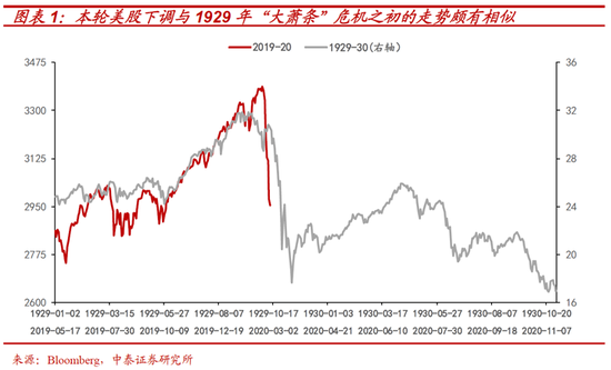 本轮危机未来将如何演绎?对照1929年危机,我们认为,当前或正处于如第一轮流动性危机的中后期,即相当于“大萧条”时1929年10-11月中旬左右。