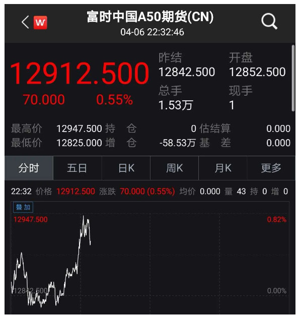 被称为A股重要先行指标的富时中国A50指数期货大幅高开,白天收盘时涨逾1.50%;6日夜盘开盘后继续上行。截至发稿时,夜盘涨幅为0.55%。