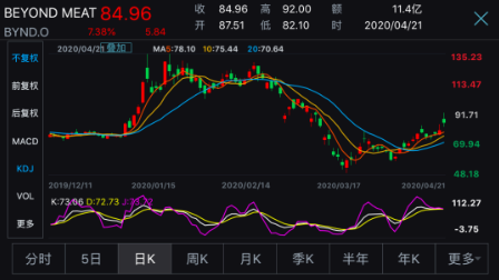 21日收盘,Beyond Meat股价大涨7.38%,盘中最大涨幅达到16%。