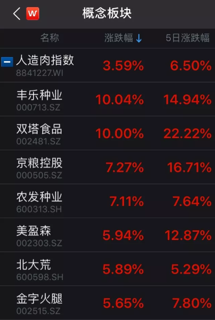 Beyond Meat宣布进军中国市场后,4月22日,A股人造肉概念板块集体大涨。截至上午收盘,丰乐种业、双塔食品、大北农涨停。