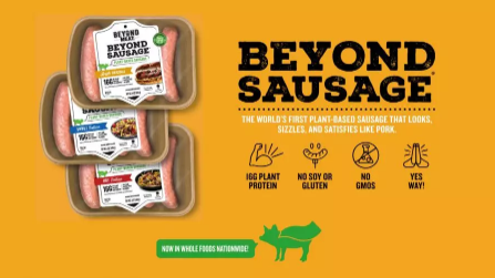 Beyond Meat总部位于加州,生产素食香肠、纯素鸡肉和Beyond Burger等产品,而且其产品已经在全食超市和克罗格等美国大型超市销售 。