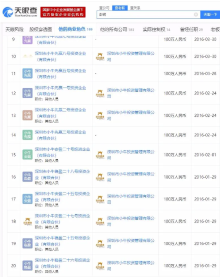 根据天眼查数据显示,彭铁围绕着小牛资本管理集团有限公司打造出了一个巨大的金融帝国,与他产生控制关系的公司多达88家,有些小牛旗下的小公司甚至没有命名,直接以数字代号一、二、三代指。