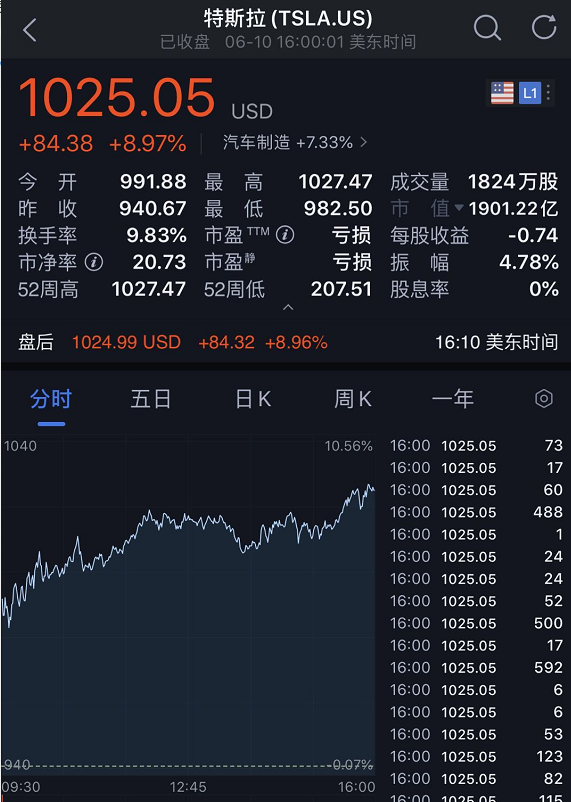 三是特斯拉暴涨近9%,总市值突破1900亿美元,超越丰田成全球市值最大汽车公司。