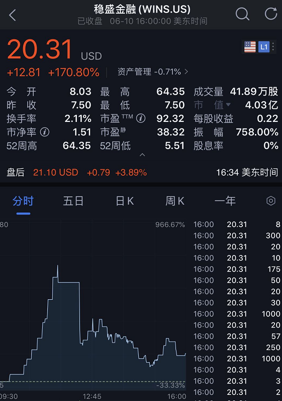 同样诡异的情况还发生在金融界、稳盛金融身上。但无一例外,到了收盘,涨幅都大举回落,买在最高点均可能受到巨大亏损。