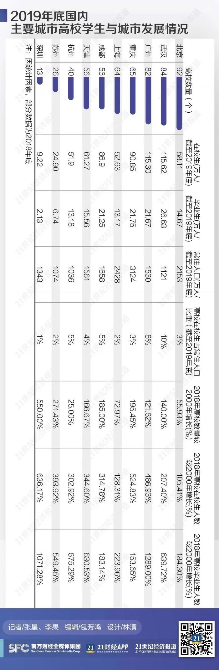 21世纪经济研究院研究员认为,快速增长的高校在校生人数,不仅体现了一座城市在高等教育方面的发展实力,亦对改善当地的劳动力结构、产业结构有推动作用。