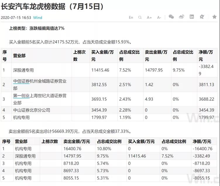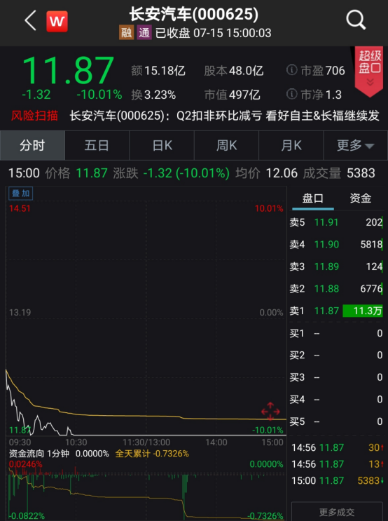 长安汽车7月14日晚间发布的业绩预告显示,预计公司2020年上半年净利润20亿-30亿元,同比增长189.28%-233.93%,实现扭亏为盈。7月15日,长安汽车放量跌停,收报11.87元,全天成交逾15亿元。