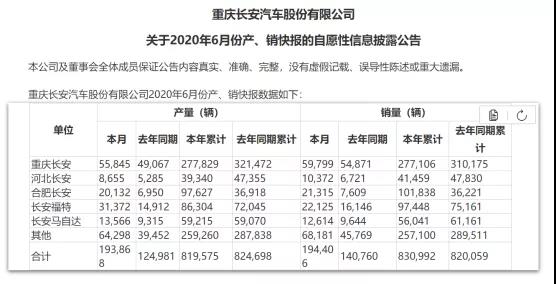 根据中汽协数据,今年上半年国内汽车市场销量同比下降16.9%。而根据公司产销快报,长安汽车6月单月实现销量19.40万辆,同比增长38%,显著超越行业。1-6月累计销量83.1万辆,同比增长1.3%。