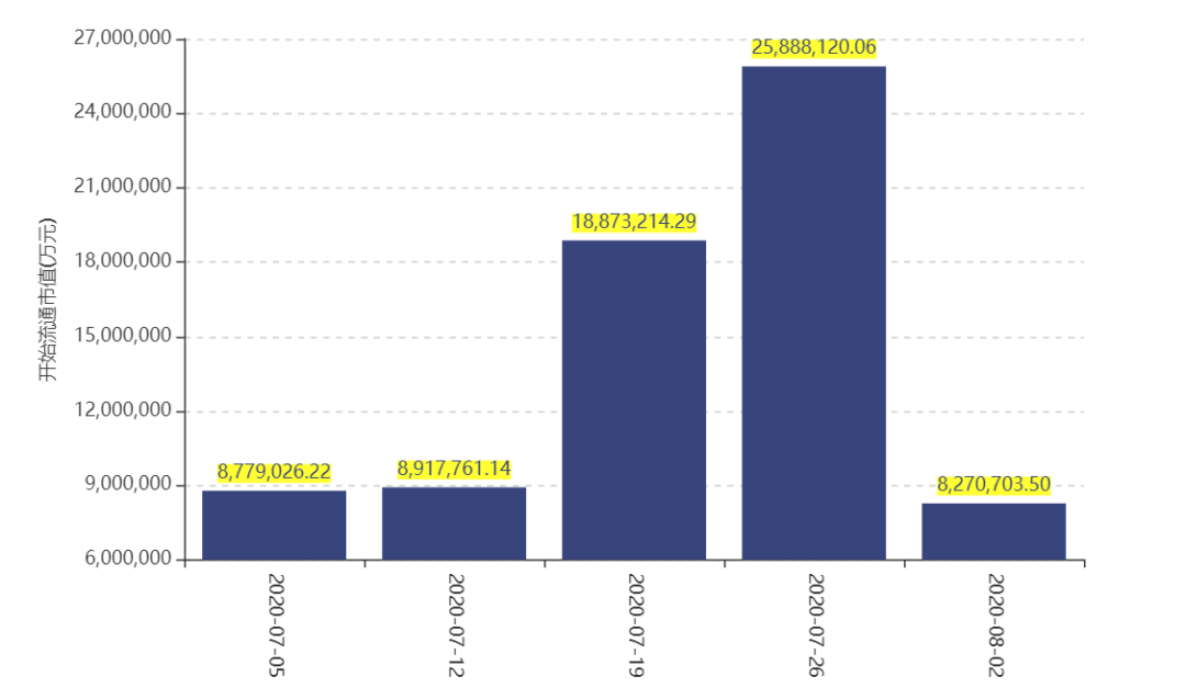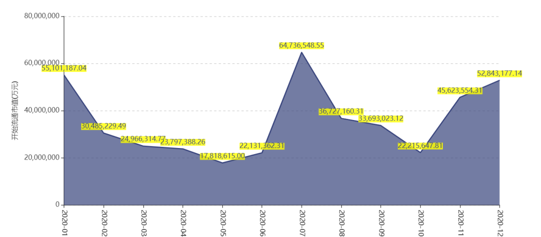 Wind统计显示,限售股7月开始流通上市的公司达到234家次,有209.80亿股开始流通,市值规模达到6473.65亿元,是2020年规模最大的月份。