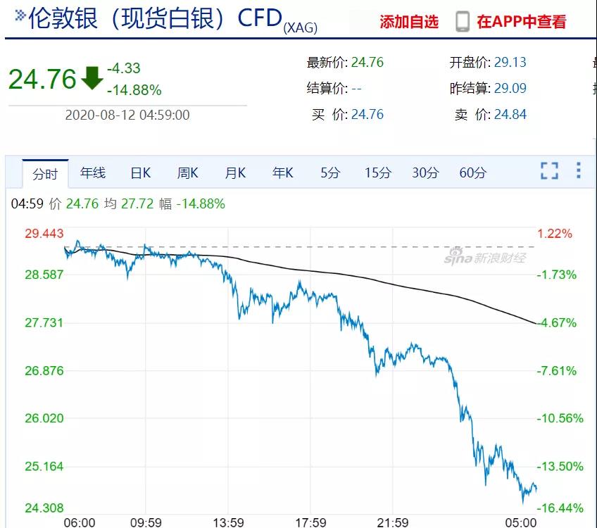 在金价崩盘的带动下,其他贵金属品种也纷纷下跌: