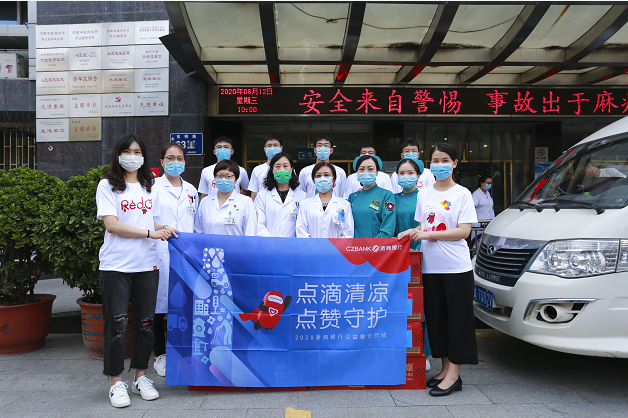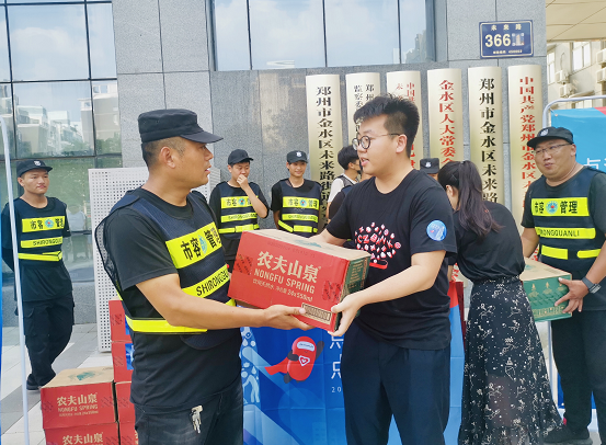 浙商银行郑州分行的青年志愿者组建了送水小分队,分别走进未来路社区街道办事处、郑州市交警一大队、数码小镇工地、医院、环卫站点等多地,为在炎热夏季依然奋战在一线的工作者送上清凉和慰问,向他们守护家园致以爱心和敬意。活动期间,浙商银行郑州分行共送出去18000多瓶矿泉水。