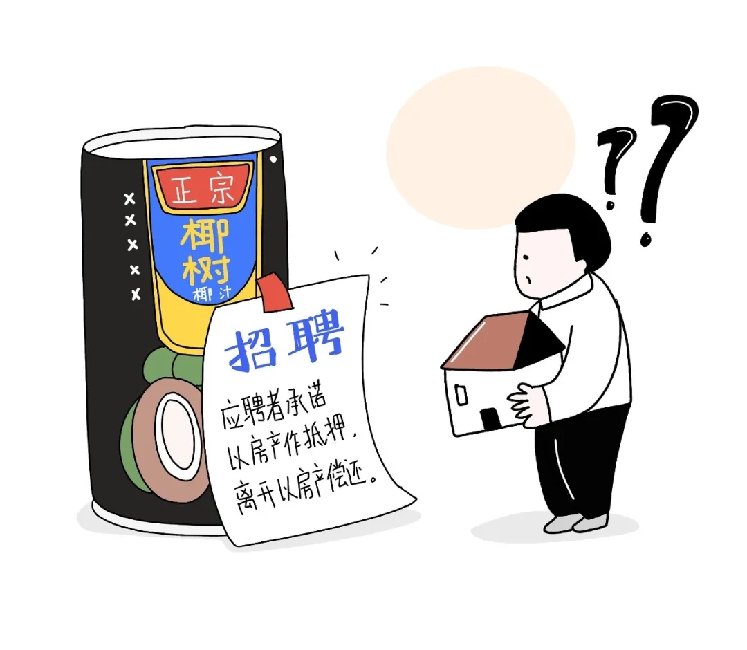 可以说,椰树集团这个招聘启事中设置的以房产做抵押的条件是明显违反《劳动合同法》的上述规定的。