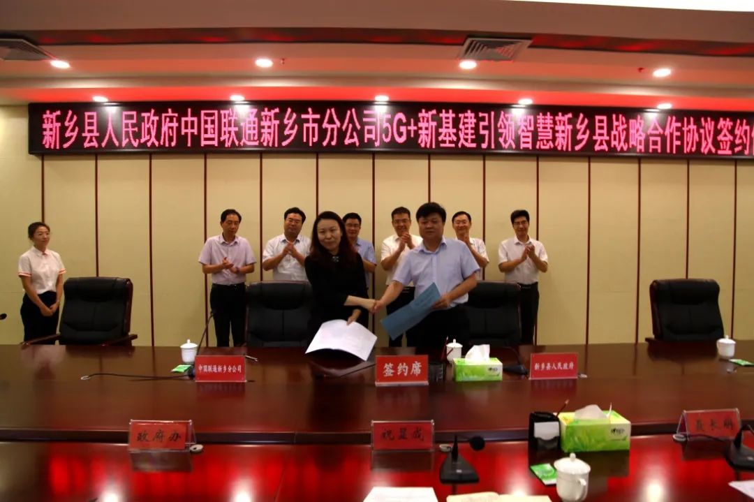 8月20日,新乡县人民政府与中国联通新乡市分公司(以下简称新乡联通)隆重举行“5G+新基建引领智慧新乡县”战略合作协议签约仪式。