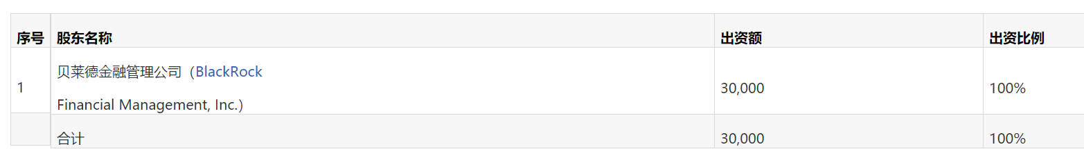 二、核准贝莱德基金注册资本为3亿元人民币,核准股权结构为: