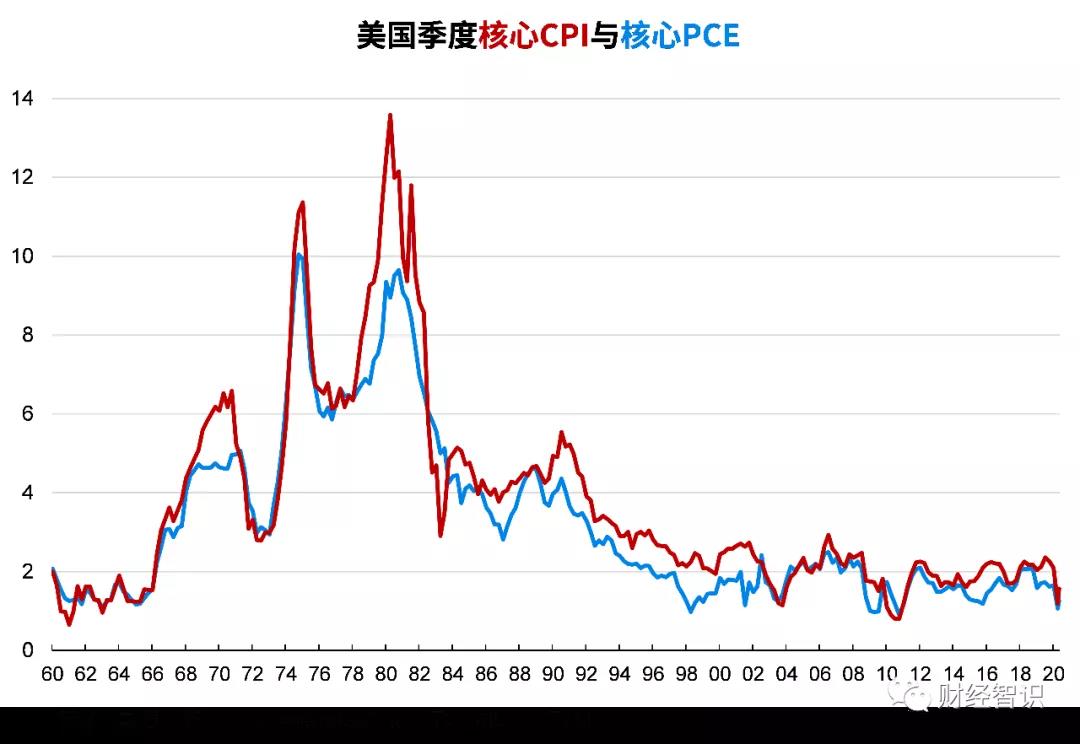 美联储考虑的政策指标考虑的是核心通胀率,核心PCE绝大部分时间小于核心CPI。例如,最新美国七月的核心PCE是1.25%,而核心CPI是1.57%。由于核心PCE的波动性明显小于核心CPI,因此,不仅市场普遍认为以“稳定物价”为政策目标的美联储使用的通胀指标就是“核心PCE”,在美联储的官方文件里,也指明了这点。当然,美联储也会参考其他通胀指标来理解物价变动的趋势。