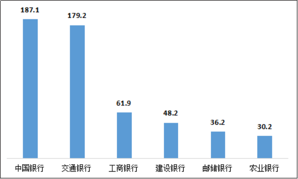 1.中国银行、交通银行、工商银行的平均每千万个人客户投诉量位居国有大型商业银行前三名。2020年第二季度,国有大型商业银行的平均每千万个人客户投诉量的中位数为55.1件/千万个人客户。其中,中国银行187.1件/千万个人客户,交通银行179.2件/千万个人客户,工商银行61.9件/千万个人客户,建设银行48.2件/千万个人客户,邮储银行36.2件/千万个人客户,农业银行30.2件/千万个人客户。