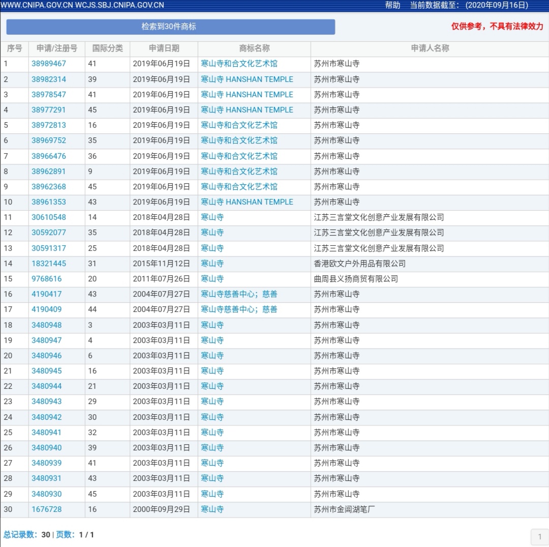 △法门寺、灵隐寺、寒山寺的商标注册信息