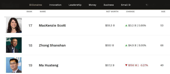 9月23日,福布斯实时富豪榜显示,农夫山泉创始人钟睒睒身家达591亿美元,超越马化腾登顶中国首富。