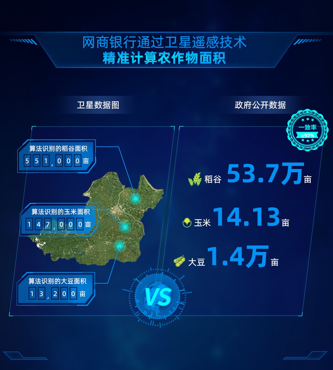 “农户可以拿着手机,绕地走一圈,或是在支付宝上把自己的地在地图上圈出来,卫星就可以去识别这块地的农作物面积、作物类型,分辨出水稻、玉米、小麦、花生、烟草等多种作物的区别,目前准确率已达到93%以上。农户圈出的地块是否准确,也可以和农户在政府机构登记的土地流转、农业保险等数据进行交叉验证。”网商银行农村金融首席算法专家王剑解释道。