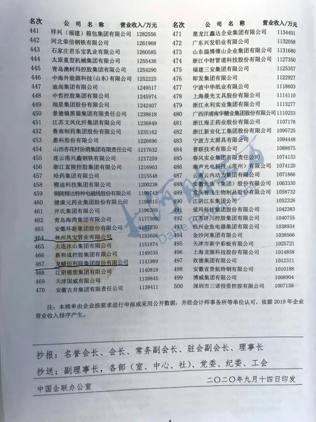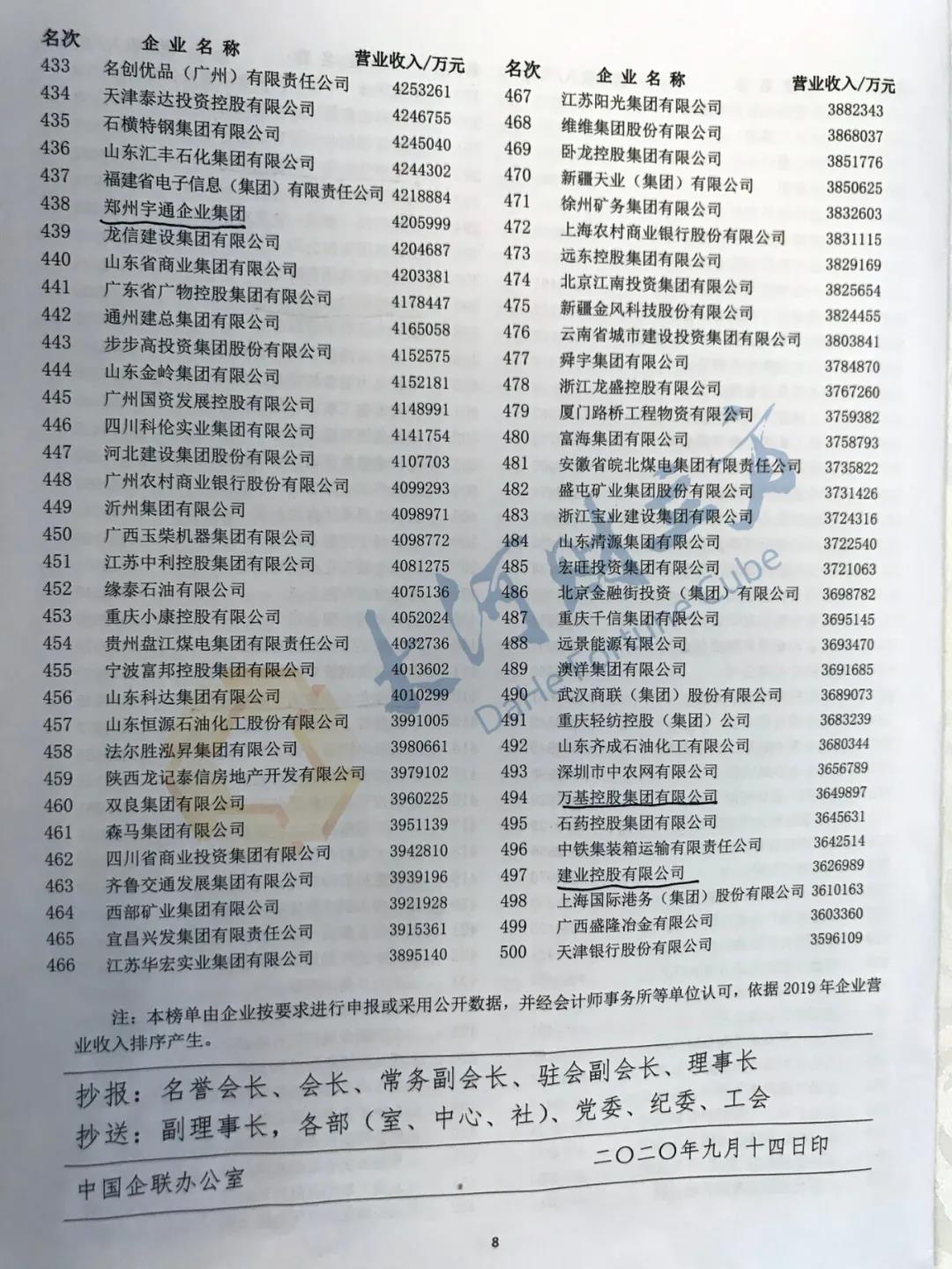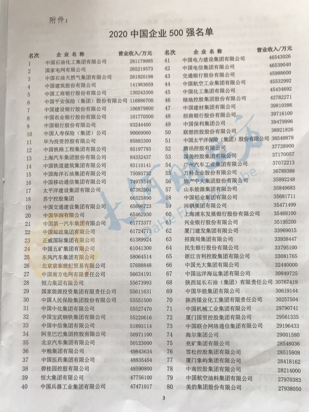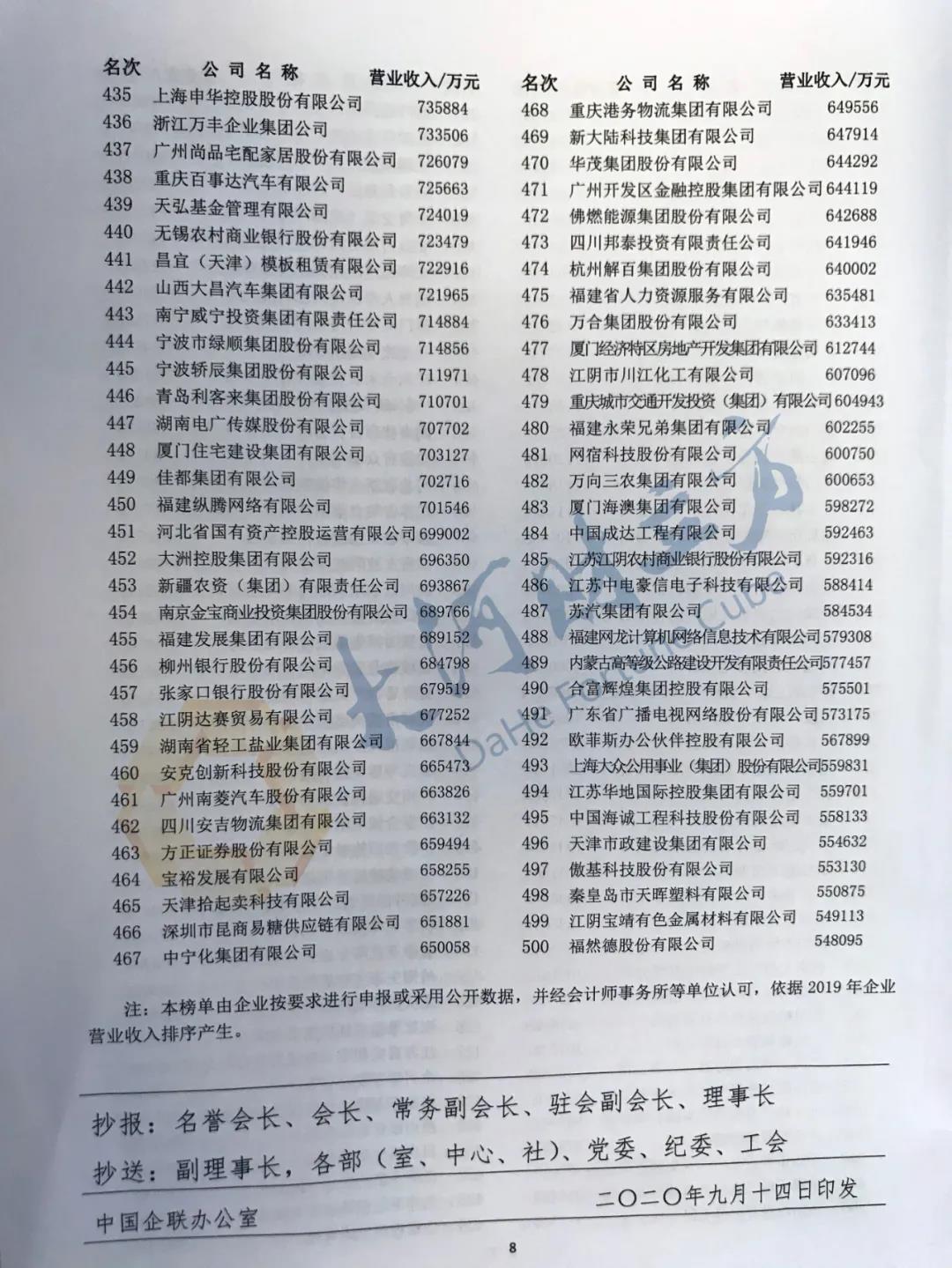 9月28日,在郑州举办的2020中国500强企业高峰论坛上,发布了2020中国企业500强等榜单。这是中国企业联合会、中国企业家协会连续第19年发布中国企业500强,连续第16年发布中国制造业企业500强和中国服务业企业500强,并在此基础上连续第10年发布中国跨国公司100大,连续第2年发布战略性新兴产业领军企业100强。