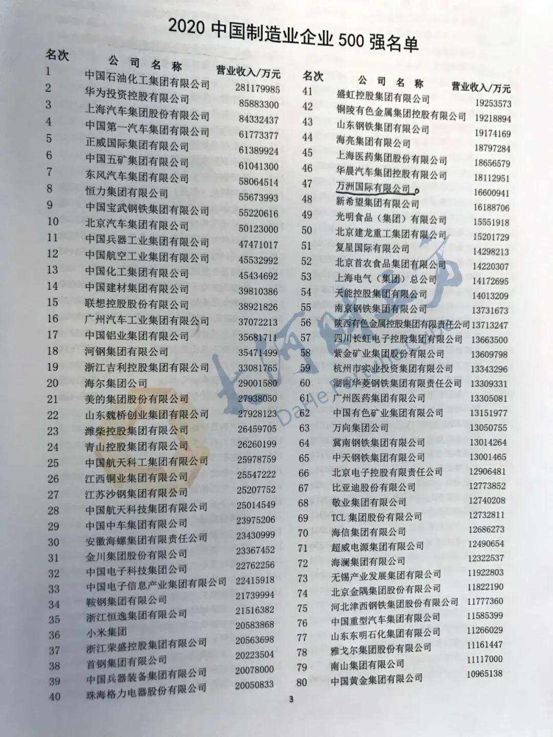 同日出炉的还有2020中国制造业企业500强、服务业企业500强、100大跨国公司、战略性新兴产业领军企业100强等榜单。