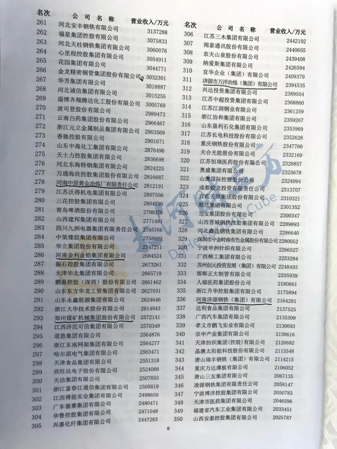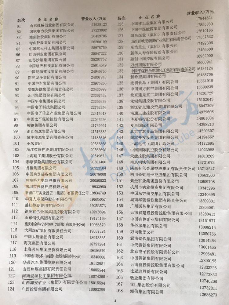 据大河报·大河财立方记者统计,此次共有10家河南企业入围2020中国企业500强榜单。分别是:河南能源化工集团有限公司、万洲国际有限公司、中国平煤神马能源化工集团有限责任公司、洛阳栾川钼业集团股份有限公司、安阳钢铁集团有限责任公司、天瑞集团股份有限公司、河南豫光金铅集团有限责任公司、郑州宇通企业集团、万基控股集团有限公司、建业控股有限公司。