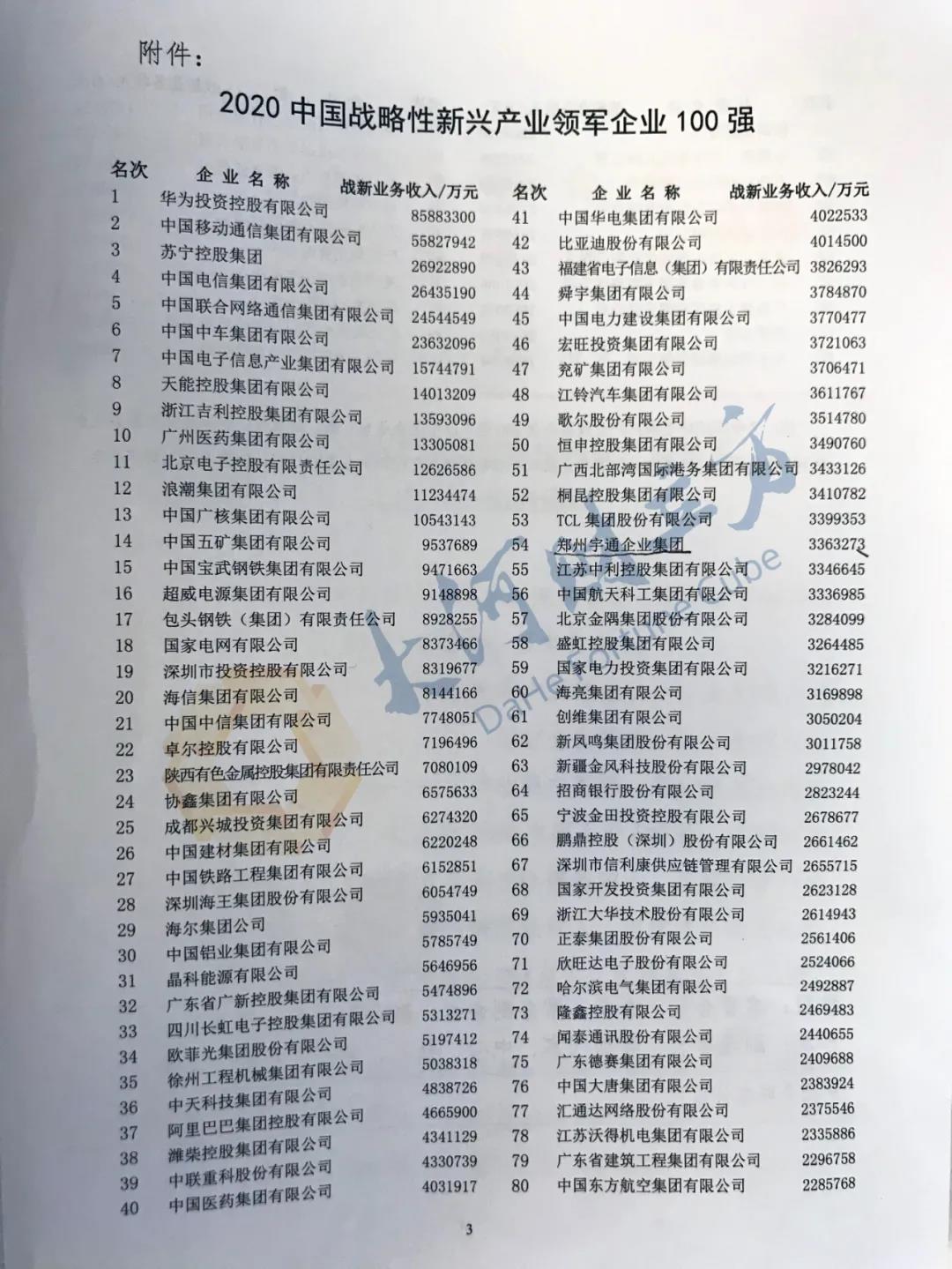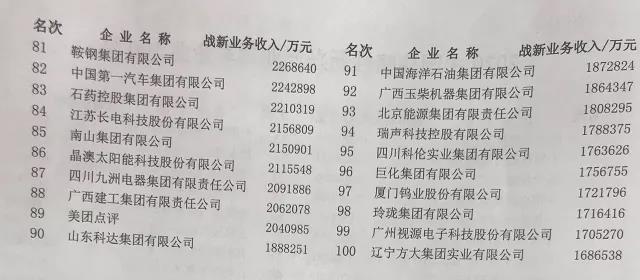 战新100强以三个“500强”榜单为基础,依据企业全部营业收入中战略性新兴产业相关业务归口统计的营业收入排序产生。