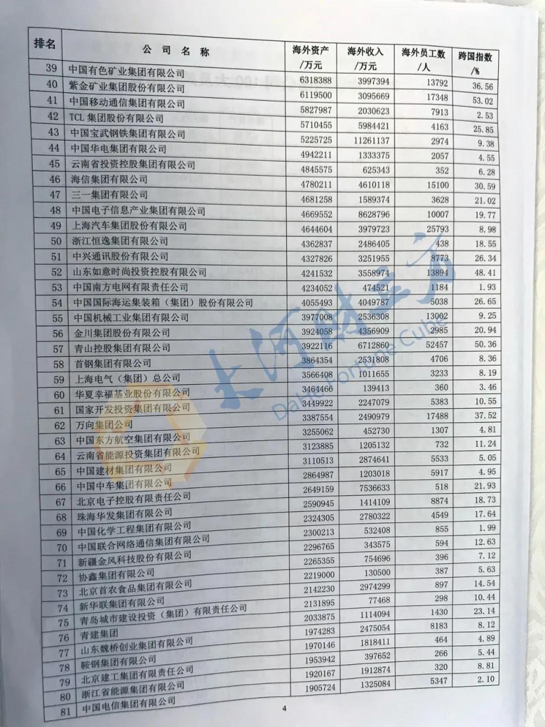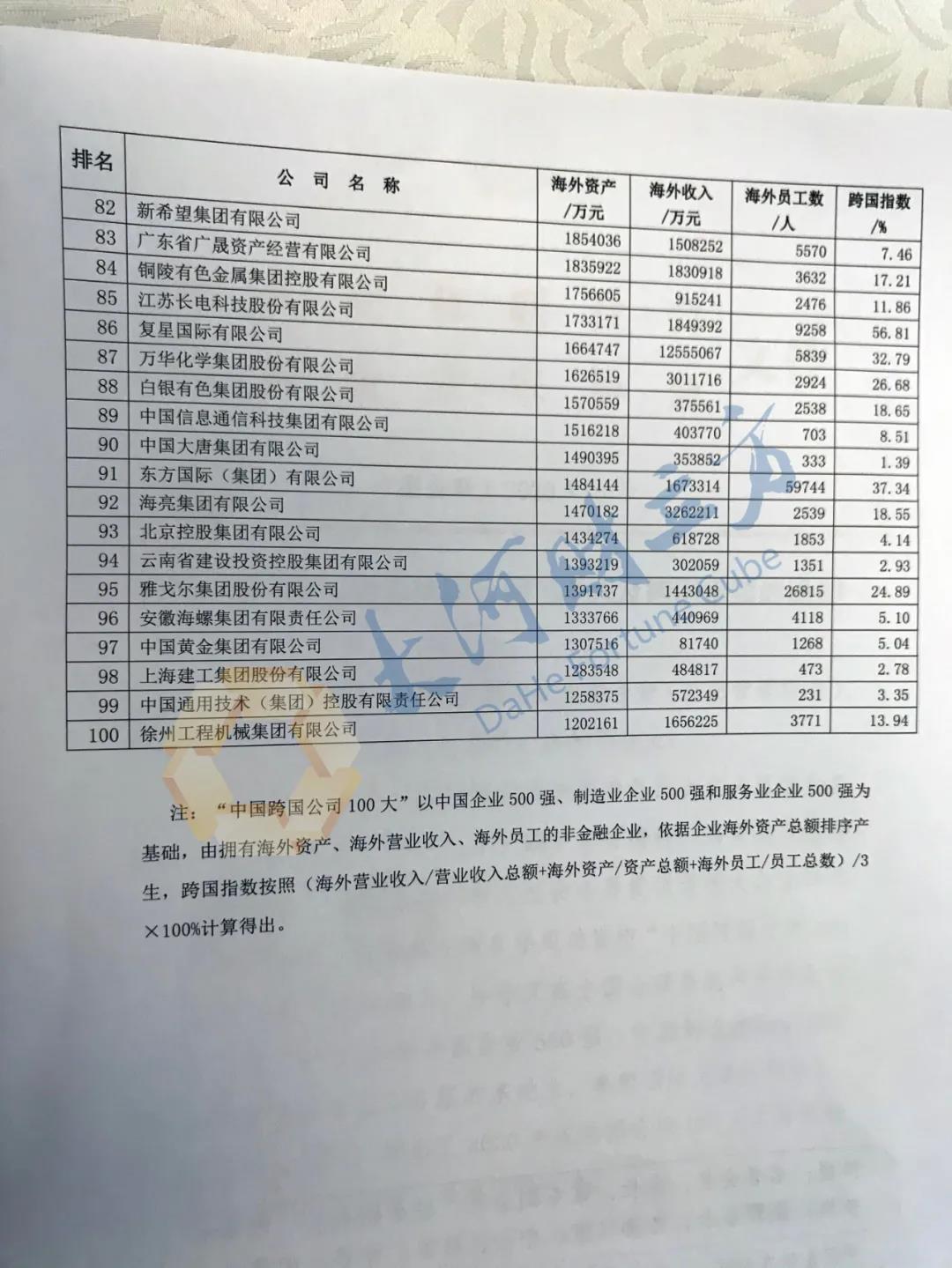 世界级企业大幅增加,国际地位进一步提高,国际化经营深入推进,100大跨国公司平均跨国指数创下历史新高。