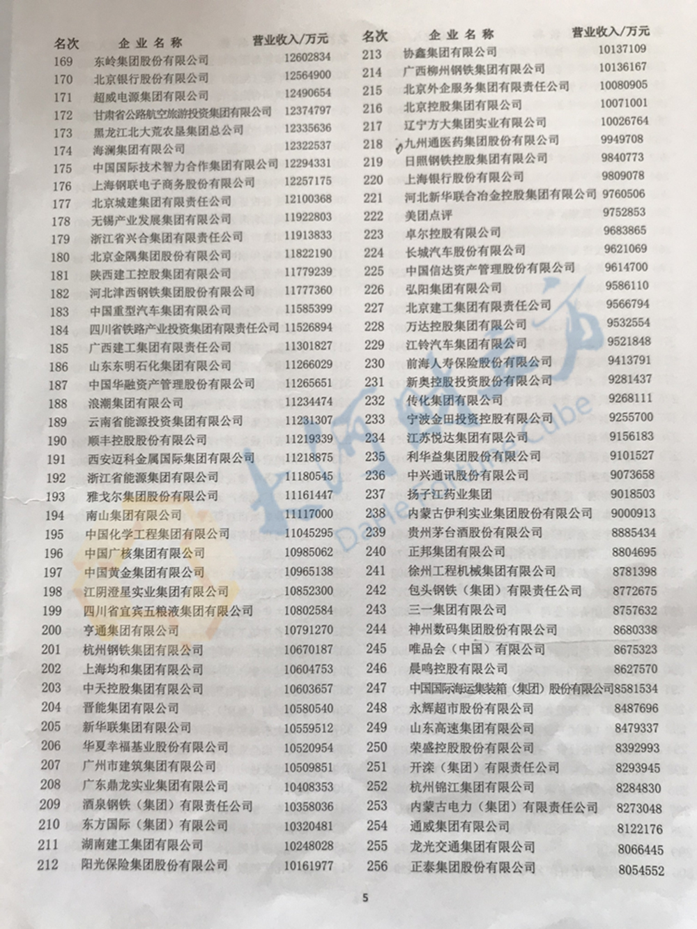 本次中国企业500强中营业收入规模在1000亿元以上的企业数量为217家。千亿俱乐部中,还有8家企业营业收入超过了万亿元的超大型集团企业。