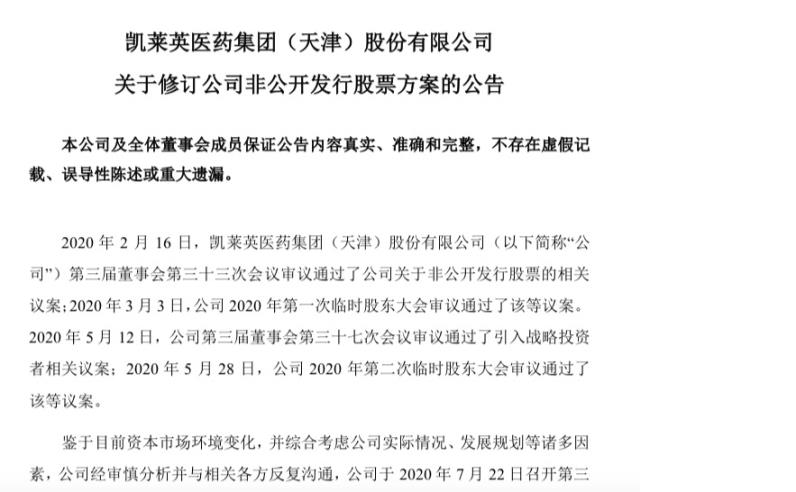7月22日晚间,凯莱英大幅度修改了定增方案。除了募资规模仍然为23亿元外,定增对象、锁定期和定价基准日、募集资金用途等关键信息都进行了调整。