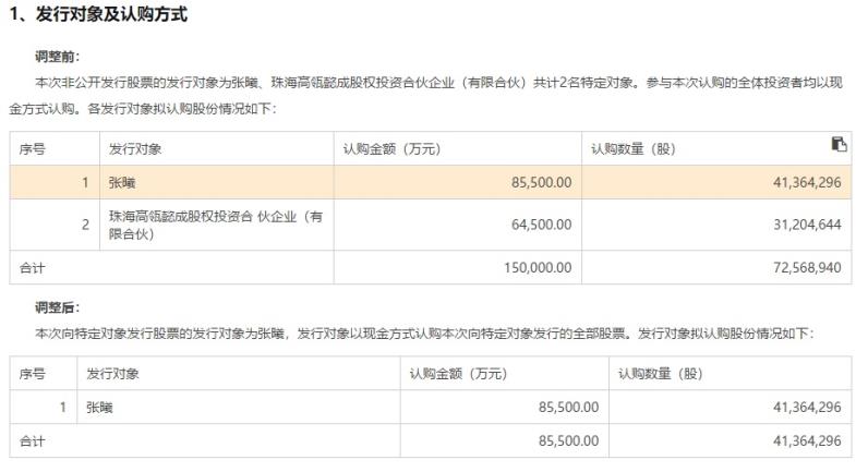 1、非公开发行对象由高瓴资本变更为不超过35名特定投资者。