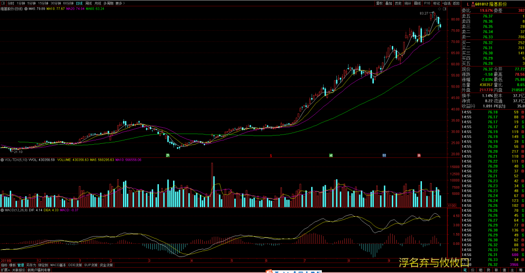 隆基股份的股价也确实因此“吓了一跳”。次日早盘,隆基股份的股价跳空3.40%的跌幅低开,全天股价维持整理的走势,最终收跌3.47%。